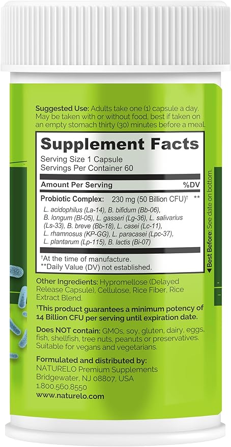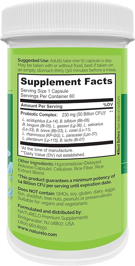 - EFFECTIVE DELIVERY: NATURELO Probiotics are formulated in delayed-release capsules, a method that aids the survival of live probiotics and their effective delivery to the gut. This special delayed action protects lactobacillus and bifidobacterium from the acidic environment in the stomach.