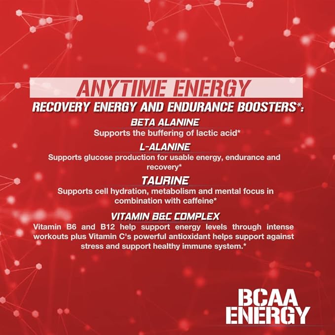 - Science Based Formula - Try the EVL BCAA Energy branch chain amino acids supplements for men and women with 5g of the ideal 2:1:1 ratio of branched chain amino acids plus Beta Alanine and more