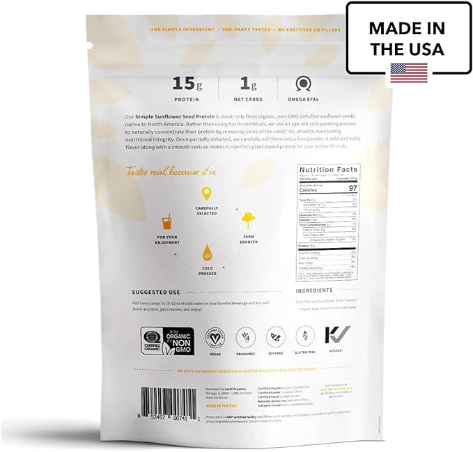 - PURE ORGANIC PLANT PROTEIN - Organic plant protein powder from 100% pure, cold-pressed sunflower seeds.