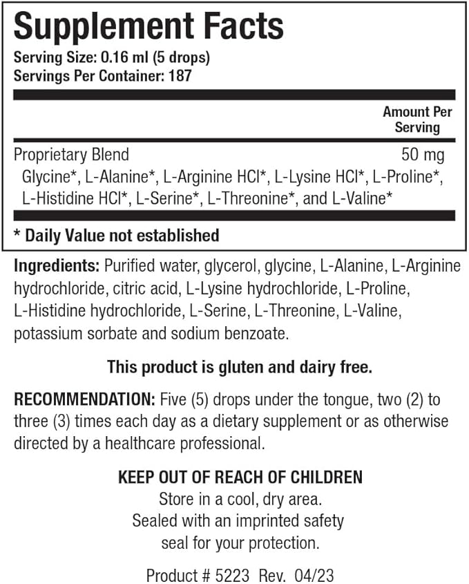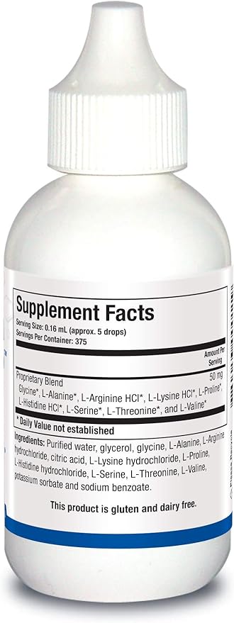 Biotics Research Amino Acid Quick Sorb Liquid Formula, Highly Absorbed, Glycine, L Alanine, L Arginine HCl, L Lysine HCl, L Proline, L Histidine HCl, L Serine, L Threonine, L Valine, 2 Fluid Ounces