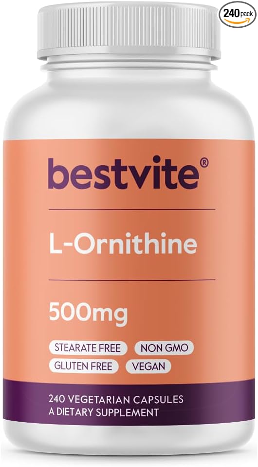 BESTVITE L-Ornithine 500mg (240 Vegetarian Capsules) - No Stearates - No Fillers - Vegan - Non GMO - Gluten Free