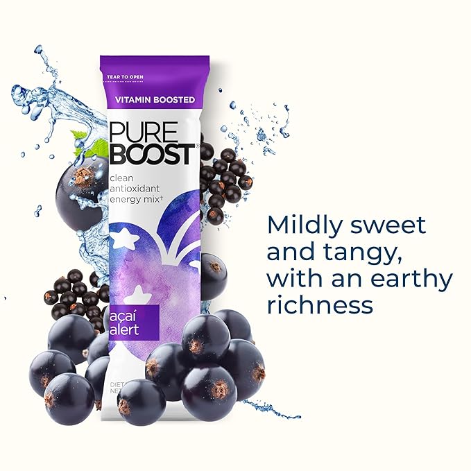Pureboost Clean Energy Booster, Refreshing Energy Drink Mix with B12 Vitamins, Electrolytes, Antioxidants, Sugar-Free with No Sucralose (Acai Alert, 30 Count)