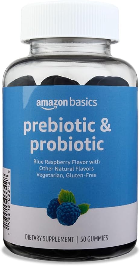Amazon Brand - Solimo Prebiotic & Probiotic Gummies, 2 Billion CFU, Blue Raspberry, 50 Count (2 per Serving)