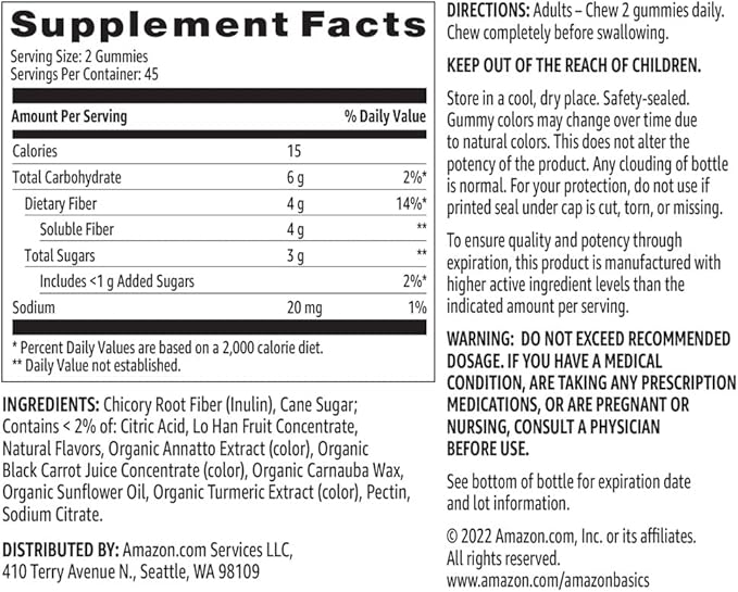 Amazon Basics Fiber Gummies for Digestive Health and Regularity, Orange, Lemon & Strawberry Flavors, 90 Count, Pack of 1 (Previously Solimo)