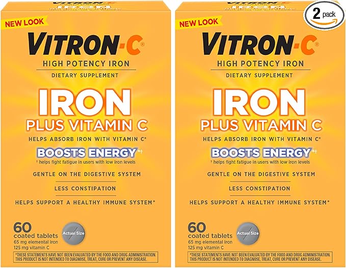 - Contains 2 packs of Vitron-C High Potency Iron Supplement Plus Vitamin C, 60 tablets in each pack