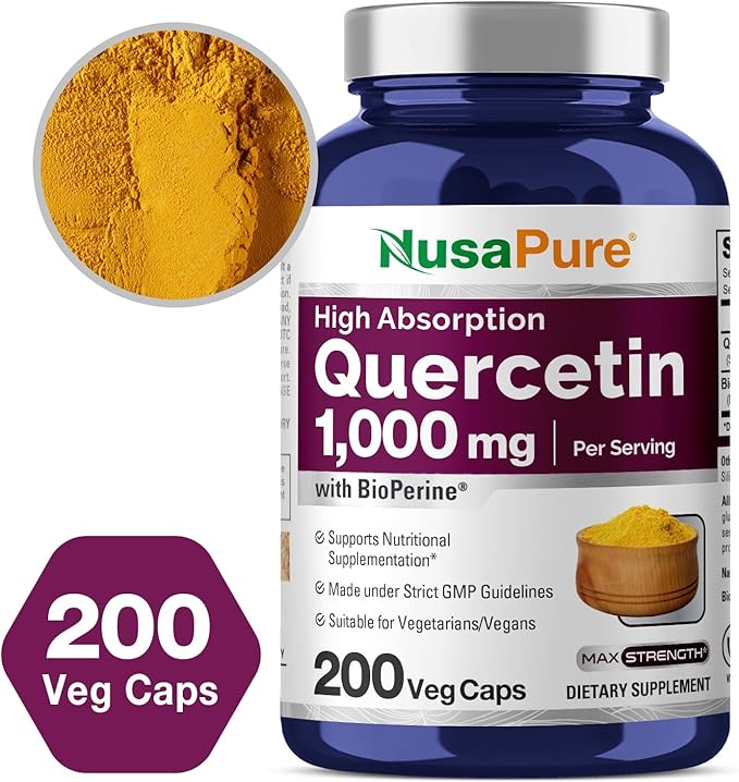 NusaPure Quercetin 1000mg - 200 Veggie Caps (Non-GMO, Vegan, Vegetarian) Bioperine