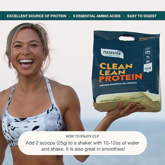 Nuzest - Pea Protein Powder - Clean Lean Protein, Premium Vegan Plant Based Protein Powder, Dairy Free, Gluten Free, GMO Free, Protein Shake, Smooth Vanilla, 100 Servings, 5.5 lb