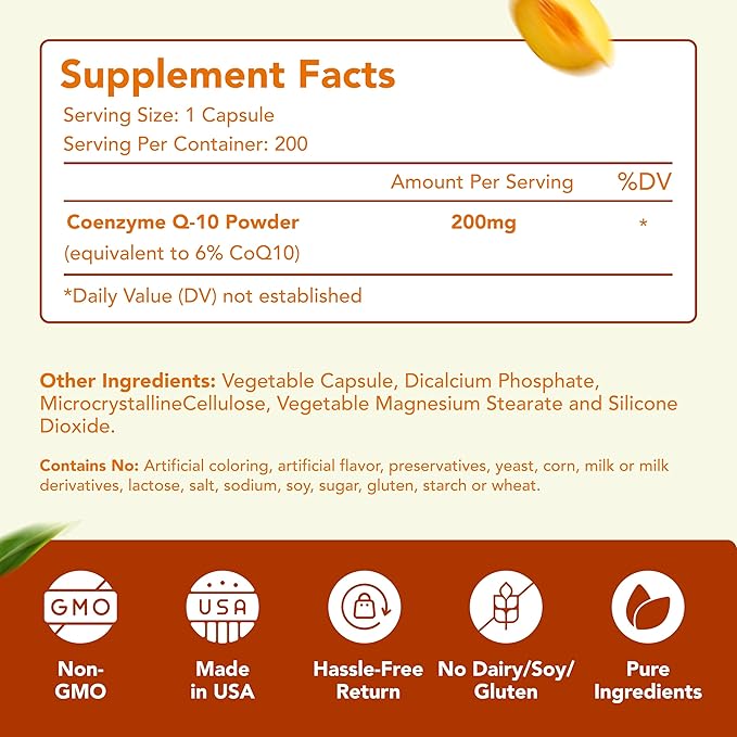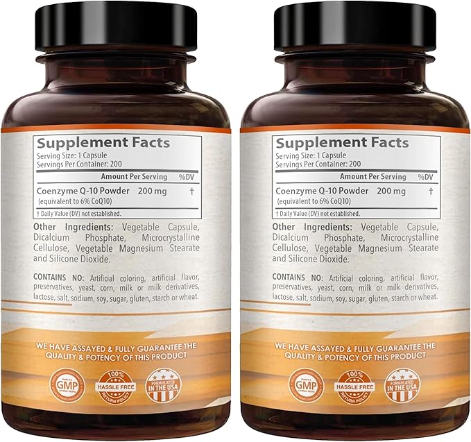 - American Made: Our CoQ10 200 mg supplement is proudly made in the US in a cGMP facility to give you the confidence that your health in good hands
