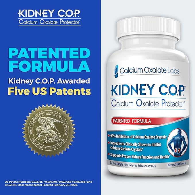 Kidney COP Calcium Oxalate Protector 120 Capsules, Patented Kidney Support for Calcium Oxalate Crystals, Helps Stops Recurrence of Stones, Stronger Than Chanca Piedra Stone Breaker Supplements 6 Pack