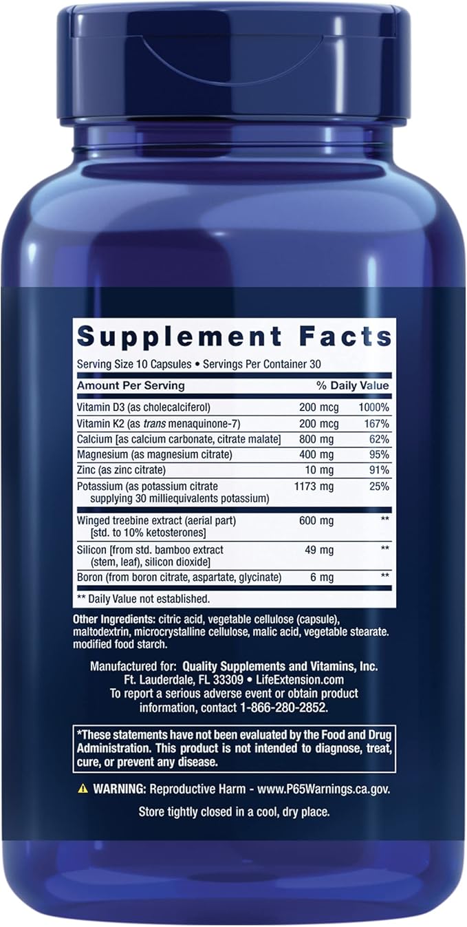 Life Extension Dr. Strum's Intensive Bone Formula, Cissus quadrangularis, Calcium, Vitamin D3, K2, Magnesium, zinc, Potassium, Boron, Bone Health Support Formula, Gluten Free, Non-GMO, 300 Capsules