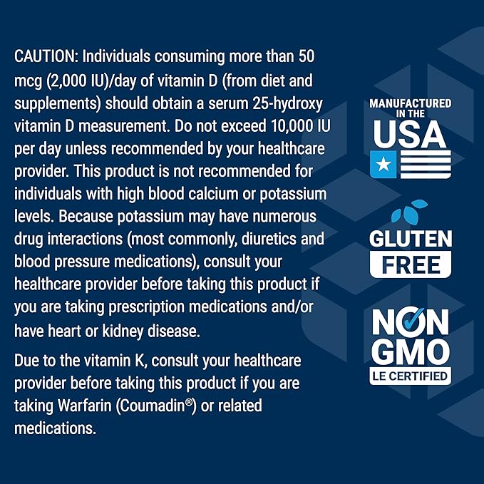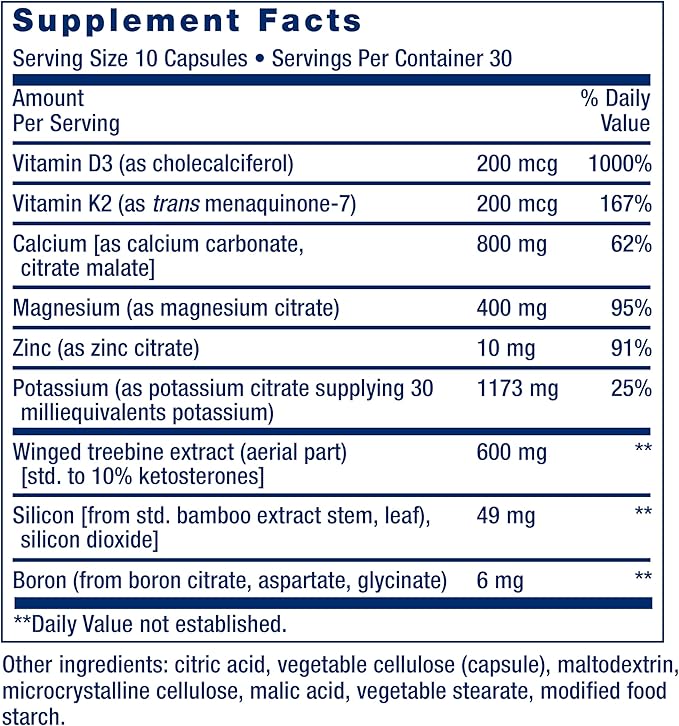 - Primary Supplement Type : Calcium [as calcium carbonate, citrate malate], Magnesium (as magnesium citrate), Potassium (as potassium citrate supplying 30 milliequivalents potassium), Vitamin D3 (as cholecalciferol), Vitamin K2 (as trans menaquinone-7) Calcium [as calcium carbonate, citrate malate], Magnesium (as magnesium citrate), Potassium (as potassium citrate supplying 30 milliequivalents potassium), Vitamin D3 (as c… See more