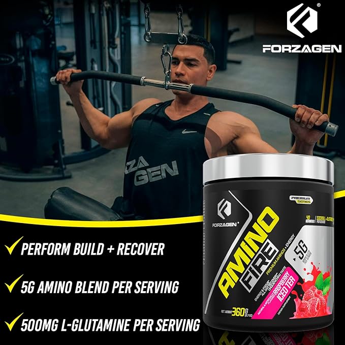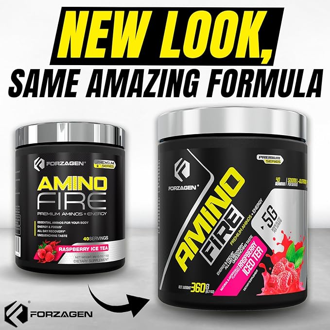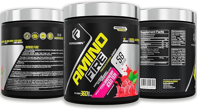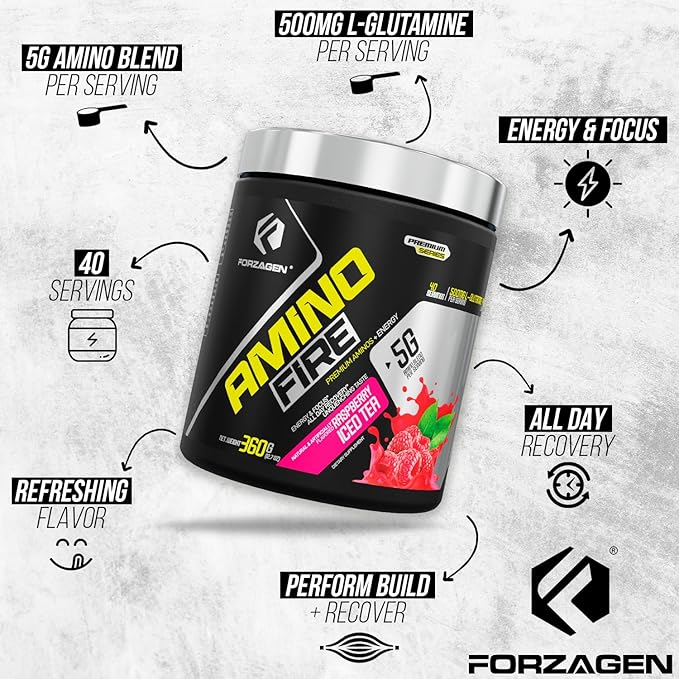 Forzagen Amino Fire | Essential Amino Energy Powder for Pre-Workout | BCAA Energy Boost & Muscle Recovery Drink Mix, Enhance Focus & Concentration, Dietary Supplement | Raspberry Ice Tea, 40 Servings