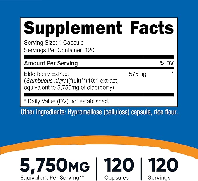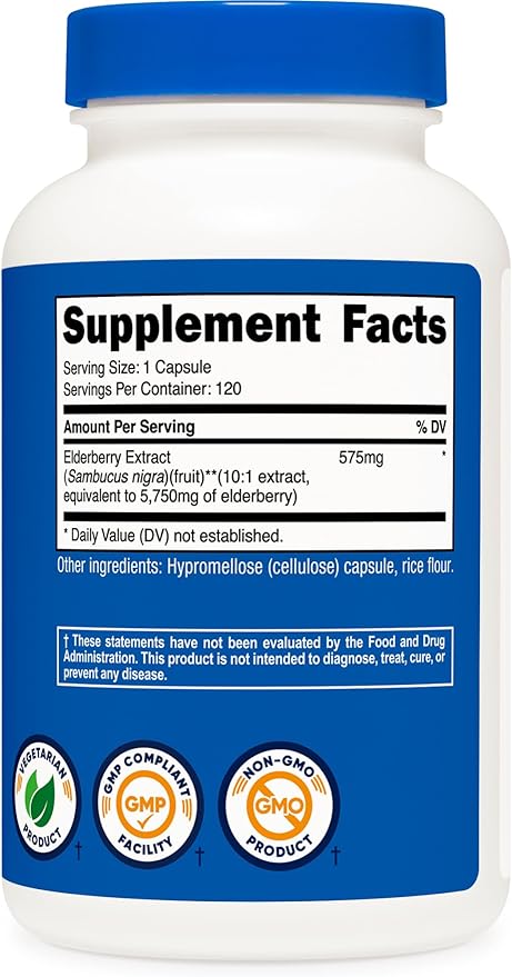 Nutricost Elderberry Capsules 575mg (120 Capsules) - Black Elderberry, Vegetarian, Gluten Free and Non-GMO Supplement