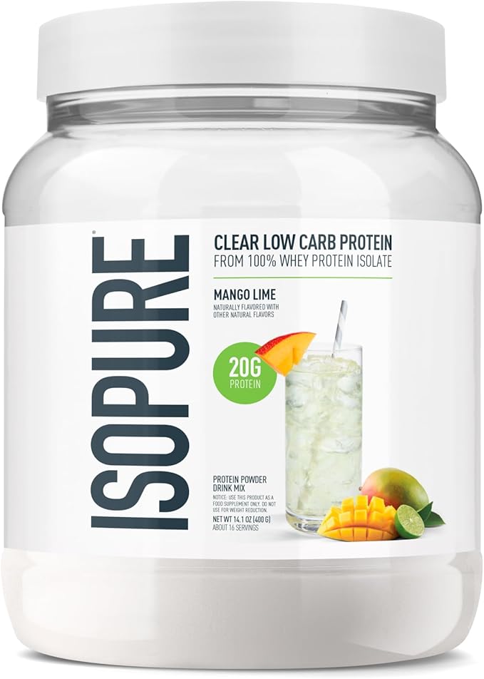Isopure Clear Whey Isolate Protein Powder, Lactose Free, Gluten Free, Naturally Flavored, Mango Lime, 20g Protein Per Serving, 14.1 Oz, 16 Servings (Packaging May Vary)