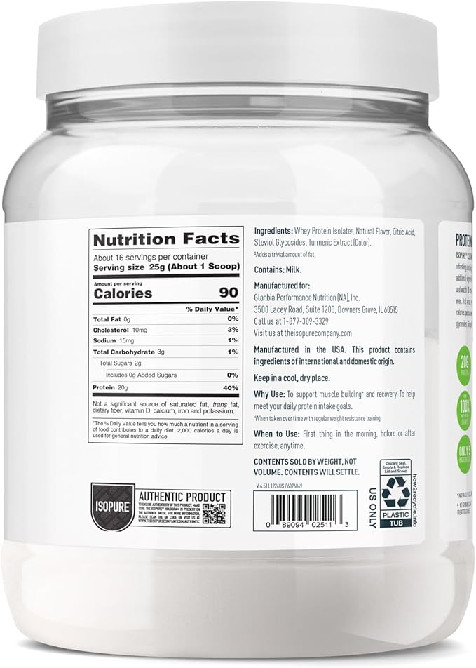 - One 14.1 oz bottle (16 servings) of Isopure 100% Pure Whey Isolate Protein Powder Infusions in dynamically delicious Mango Lime flavor
