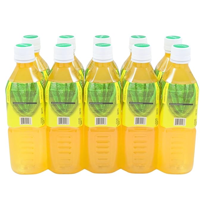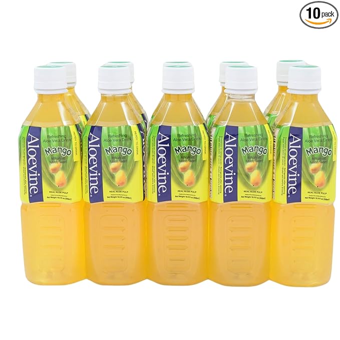 Aloevine Aloe Vera Drink Mango healthy juice pure with chunks of aloe l 16.9 oz. 10 pack l plant based Vegetable Korean drinks