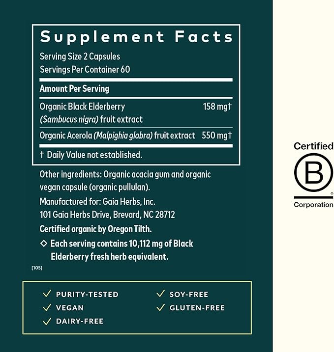 - Purity-Tested: Gaia Herbs Black Elderberry (Sambucus Nigra) is vegan, gluten-free & proudly made in NC, USA