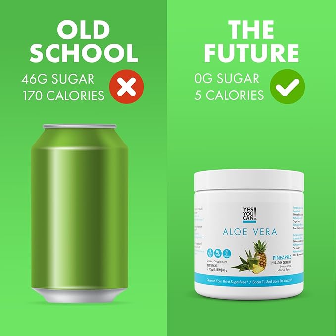 - PROMOTES PROPER HYDRATION: Yes You Can! Aloe Vera Drink Mix is an ideal organic drink mix for dehydration. Stay hydrated in a delicious and healthy way with a water-dense plant like aloe vera. At Yes You Can, we pride ourselves on using all natural ingredients in our supplements.