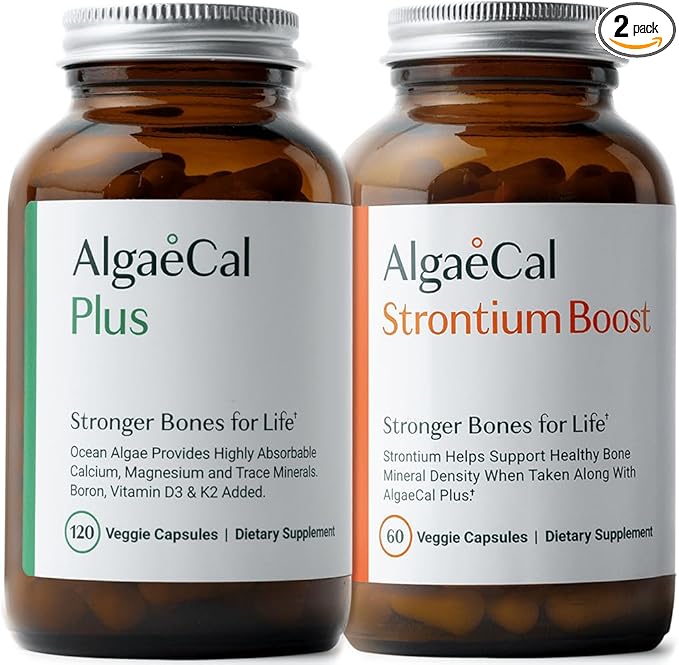 - Tested and Approved: The Bone Builder Pack is recommended by health experts to increase bone density safely and naturally. Take 2 AlgaeCal Plus capsules with breakfast or lunch, 2 with dinner, and 2 Strontium Boost capsules before bed, at least 2 hours apart from calcium. This clinically supported routine delivers 16 essential nutrients to promote stronger, healthier bones for life.