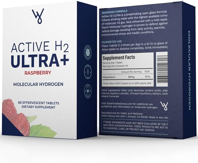 Active H2 Ultra+ Hydrogen Water Tablet, Natural Raspberry. Supports Overall Well-Being with Benefits of Molecular Hydrogen 60 Servings
