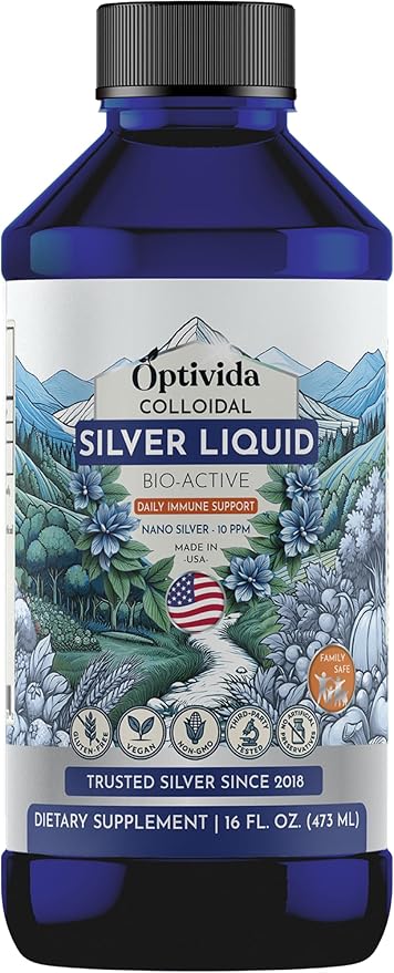 Optivida Health Nano Colloidal Silver Liquid (1 Pack) – Immune Support Supplement with Silver Hydrosol, Liquid for Immune System Support, Colloidal Silver for Adults & Kids, Non-GMO, Gluten-Free