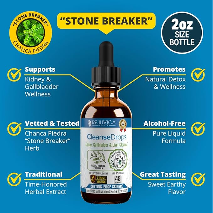- POWERFUL KIDNEY & GALLBLADDER SUPPORT: Trusted for over 10 years, Cleanse Drops, the “Stone Breaker” supplement, helps support your body’s natural detox processes and gallbladder/kidney health.