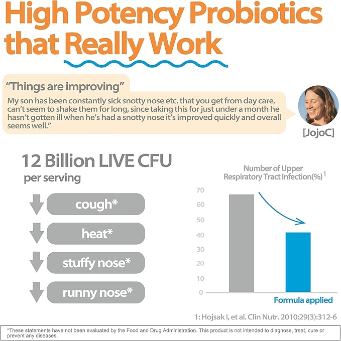 - 6-IN-1 POWERHOUSE FOR STRONGER KIDS (AGES 3-12) - Give your child superhero immunity! Our kids probiotic formulated with 6 clinically proven ingredients to support your child's natural defenses. Relieves the severity & duration of common cold. Helps maintain immune health during seasonal changes and may contribute to nutrient absorption*. Designed specifically for growing children ages 3-12 as essential probiotic nutritional supplements.