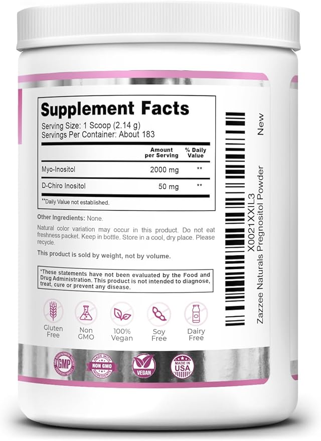Zazzee PREGNOSITOL Powder, 6 Month Supply, Myo-Inositol and D-Chiro-Inositol 40:1 Fertility Blend, Free Scoop for Exact Dosage, Premium Balanced Formula, 183 Servings, Vegan, All-Natural and Non-GMO
