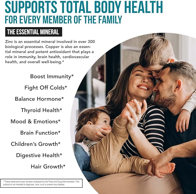 - IMMUNITY POWERHOUSE & ESSENTIAL MINERALS: Zinc is essential for immunity, mood and brain function, children’s development, digestion, thyroid health, and eye function. Zinc is involved in over 300 biological processes. Copper is also an essential mineral and potent antioxidant that plays a role in immunity, brain health, cardiovascular health, and overall well-being.*
