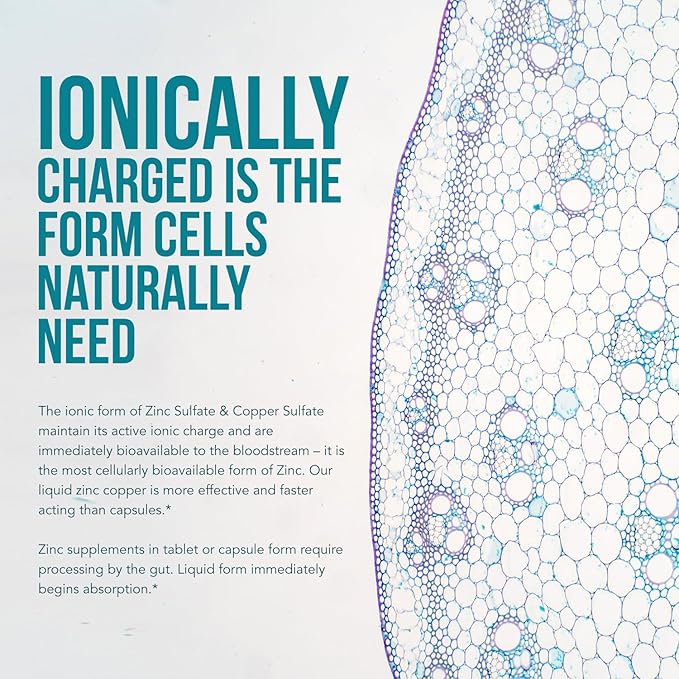 - MORE EFFECTIVE THAN CAPSULES: The ionic form of Zinc Sulfate & Copper Sulfate maintains their active ionic charge and is immediately bioavailable to the bloodstream. It's the most cellularly bioavailable form of Zinc. Our liquid zinc copper is more effective and faster acting than capsules.*