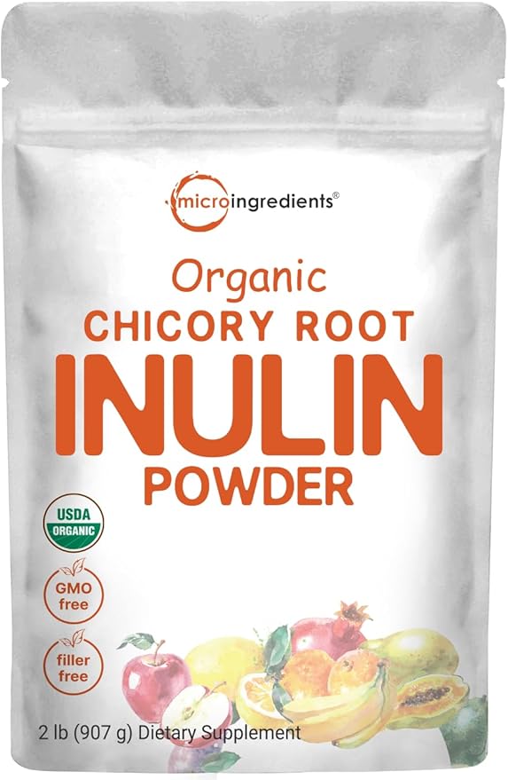 - Micro Ingredients offers raw Organic Chicory Root Inulin powder, authentic chicory root source, 2lb bulk supply, rich in water-soluble prebiotic dietary fiber.