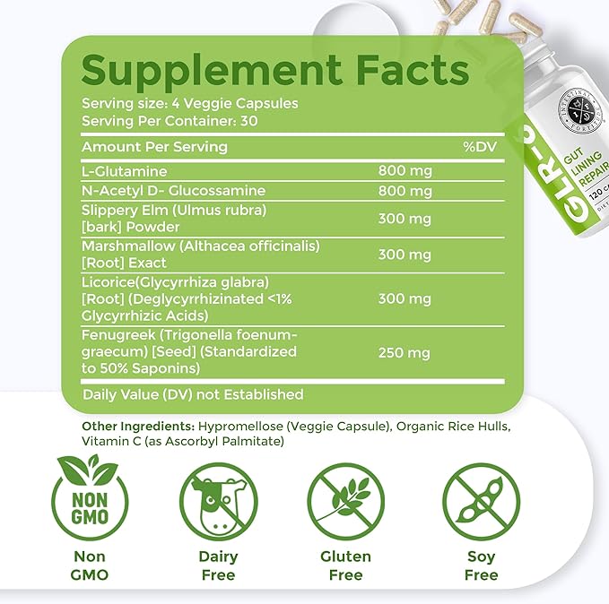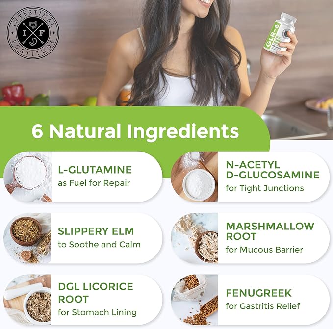 Intestinal Fortitude GLR-6 - Gut Lining Repair Supplement for Gut Health - Leaky Gut Repair with L-Glutamine, Slippery Elm, DGL Licorice Root, Marshmallow Root, Fenugreek - IBS, IBD, GERD - Vegan