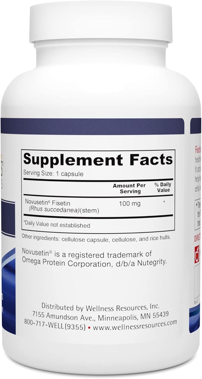 Wellness Resources Fisetin - Novusetin Fisetin Supplement for Longevity, Memory, Focus, Brain Health - Senolytic and Situin Activator - Gluten-Free, Non-GMO, Vegan (100mg, 90 Capsules)