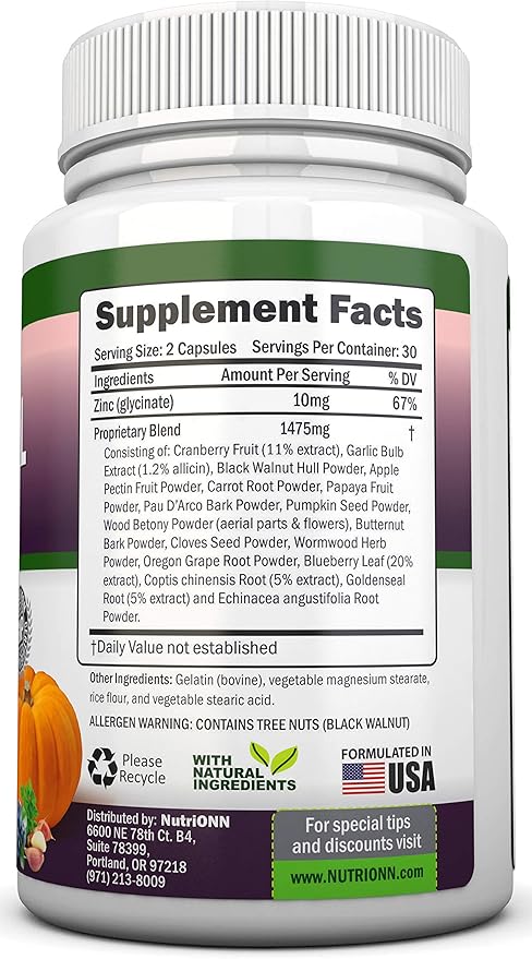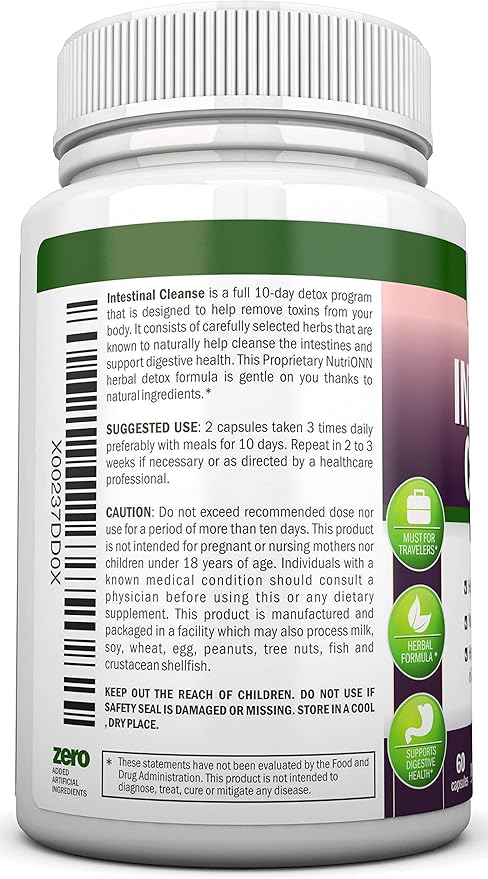 Intestinal Cleanse - All Natural Herbal Detox Formula - Full 10-Day Detox Program - Wormwood, Cranberry, Paul D'Arco, Goldenseal, Garlic, Black Walnut Hull, Echinacea and 10 Other Natural Ingredients