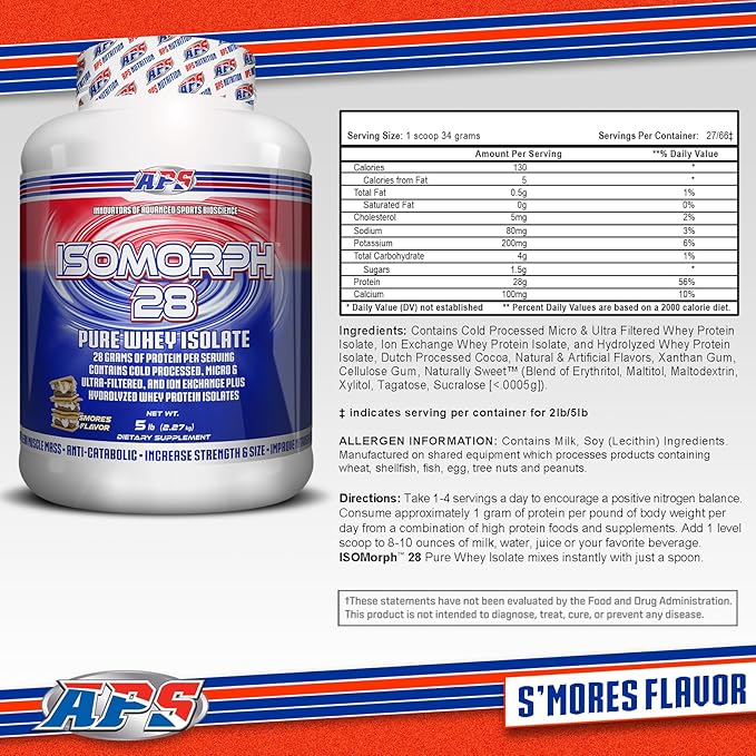 APS Nutrition Isomorph 28 Protein Powder | Pure Whey Isolate | Cold Pressed, Ultra- Filtered, & Ion Exchange Isolates | 28g Protein | 5 Pound (S’Mores)