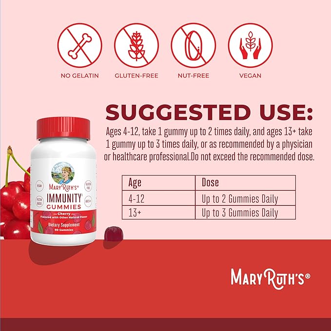 - MaryRuth’s Immunity Gummies are formulated with Vitamin C, D, Zinc, Echinacea, and Elderberry to give you the immune support you need! This powerful blend also offers additional benefits, including skin and bone health.