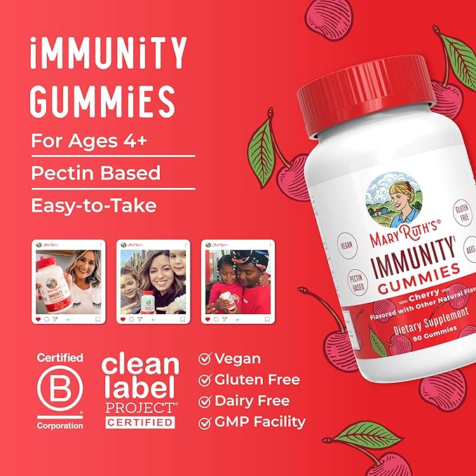 - For Most Lifestyles: For Most Lifestyles: MaryRuth's Immune Support Gummies are Non-GMO, Vegan, No Gelatin, Pectin Based, Dairy Free, Gluten Free, Nut Free, Soy Free, and Made in a GMP Facility. Clean Label Project Certified. B Corp Certified.