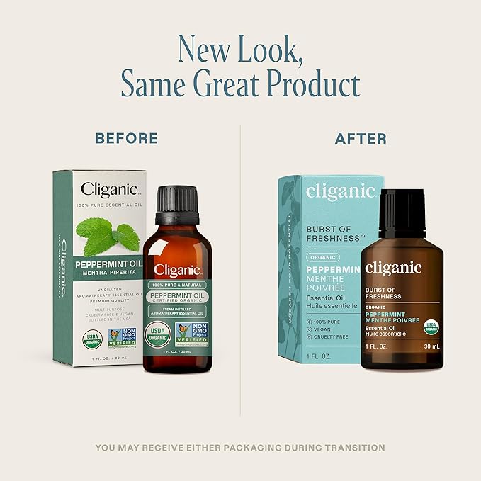 Cliganic Organic Peppermint Essential Oil, 1oz - 100% Pure Natural Undiluted, for Aromatherapy | Non-GMO Verified (Packaging May Vary)