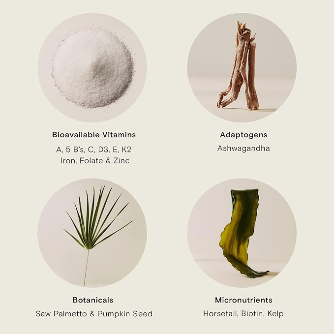 - Clinical Strength Blend - Adaptogens like Ashwagandha help balance stress hormones that contribute to thinning and hair loss. Botanicals like Saw Palmetto support healthy hair and promote thickness, and micronutrients promote hair strength and texture.