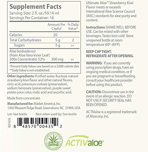 - Aloe vera juice with Strawberry Kiwi flavor to support digestive function