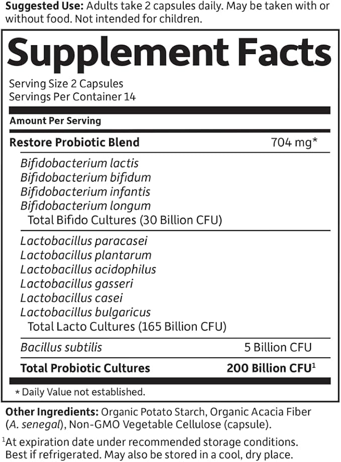 Garden of Life Dr. Formulated Probiotics Platinum Series Restore 200 Billion CFU High Potency Formula, Vegan, Non-GMO, Gluten, Dairy & Soy Free Digestive Immune Probiotic Support, 28 Capsules