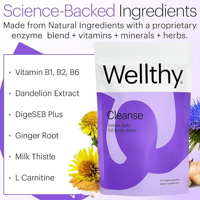 - GENTLE FULL BODY DETOX & WEIGHT MANAGEMENT: Supports your body's natural detox processes and manage your weight effectively with Wellthy CLeanse. Experience bloating relief while aiding weight management with the help of L-Carnitine that convert fat into energy, and Selenium that supports immune function. Feel lighter everyday!