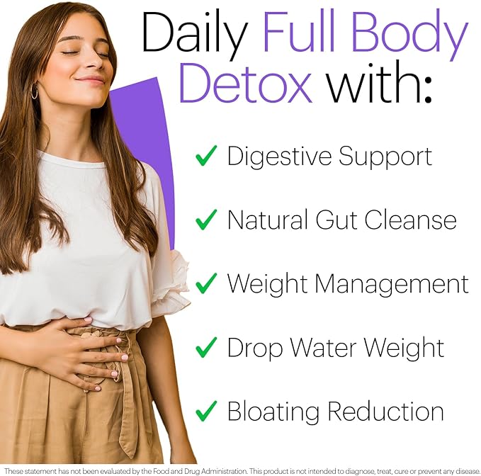 - EASY-TO-TAKE & GENTLE FORMULATION:These easy-to-swallow capsules are gentle to your system, effectively removing toxins and reducing bloating. Perfect for daily use, Just 2 capsules a day you can enjoy a fulll-body detox and support your overall health goals effortlessly.
