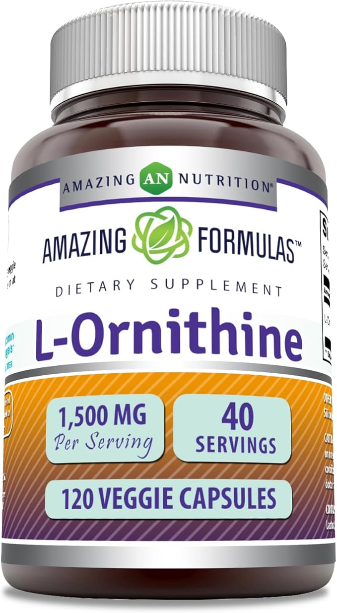 Amazing Formulas L-Ornithine 1500 Mg Per Serving Veggie Capsules Supplement | Non-GMO | Gluten Free | Made in USA (120 Count)