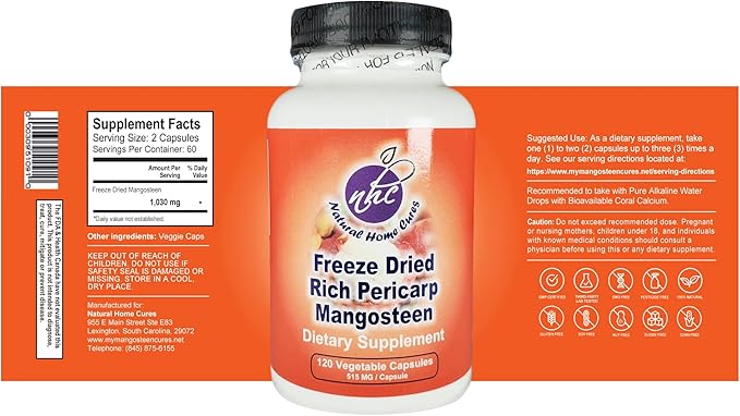 - ENHANCE WELL-BEING by improving your health with Natural Home Cures' premium organic Mangosteen Capsules. Crafted with care by our family-owned business for over 15 years, each capsule is a testament to our commitment to exceptional quality. Formulated meticulously from wild-crafted mangosteen, our capsules ensure maximum nutrient density and superior quality.