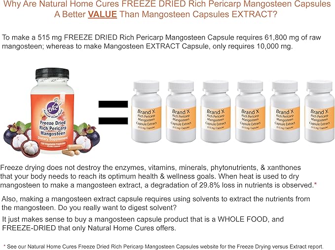 - UNLEASH UNRIVALED POTENCY of our Freeze-Dried Mangosteen Supplements and discover the power of our freeze-dried mangosteen supplements. Our advanced freeze-drying process of essential nutrients ensures superior efficacy. Each 515 mg capsule contains 6x more mangosteen.