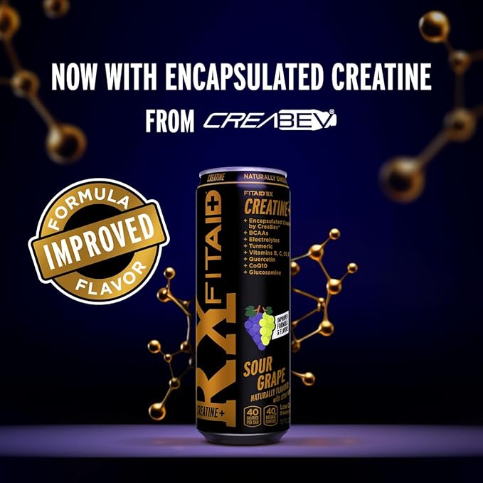 - FITAID RX contains 1,000mg of Creatine for your muscles plus key vitamins and essential nutrients: Branched-Chain Amino Acids (BCAAs), Glutamine, Glucosamine, Omega-3s, B-Complex, Electrolytes, Turmeric, CoQ10, Quercetin & Caffeine from Green Tea to help your mind and body recover.