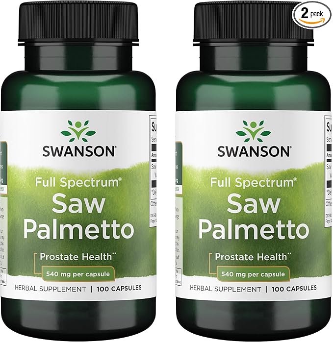 Swanson Saw Palmetto - Herbal Supplement Promoting Male Prostate Health Support - Natural Hair Supplement & Urinary Health Support - 540 mg 100 Capsules (2 Pack)