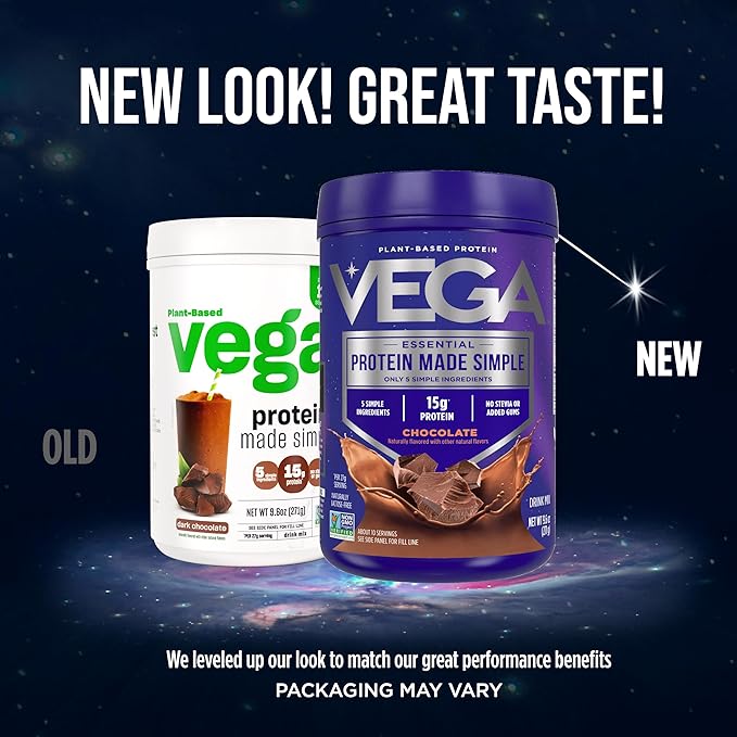 Vega Protein Made Simple - 15g Plant-Based Pea Protein, Chocolate, 10 Servings, Stevia Free, No Artificial Sweeteners or Gums, Non-GMO, Gluten Free, Dairy Free, 9.6oz (Packaging May Vary)