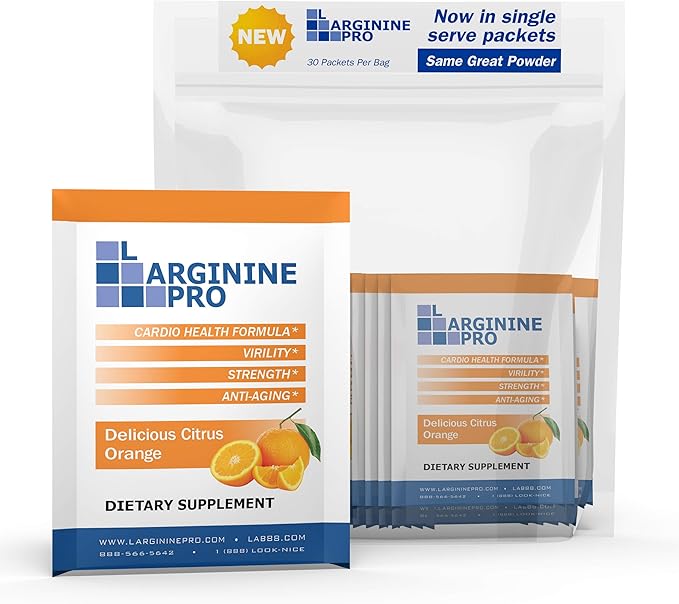 L-ARGININE PRO Supplement Powder | 30 Packets Single Serve Travel Size | 5,500mg of L-arginine Plus 1,100mg L-Citrulline, Orange